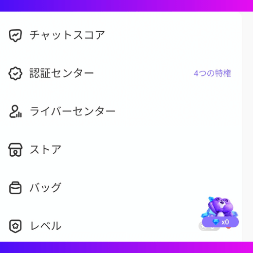 配信者(ライバー)が使用する主要機能はここに集約されています。